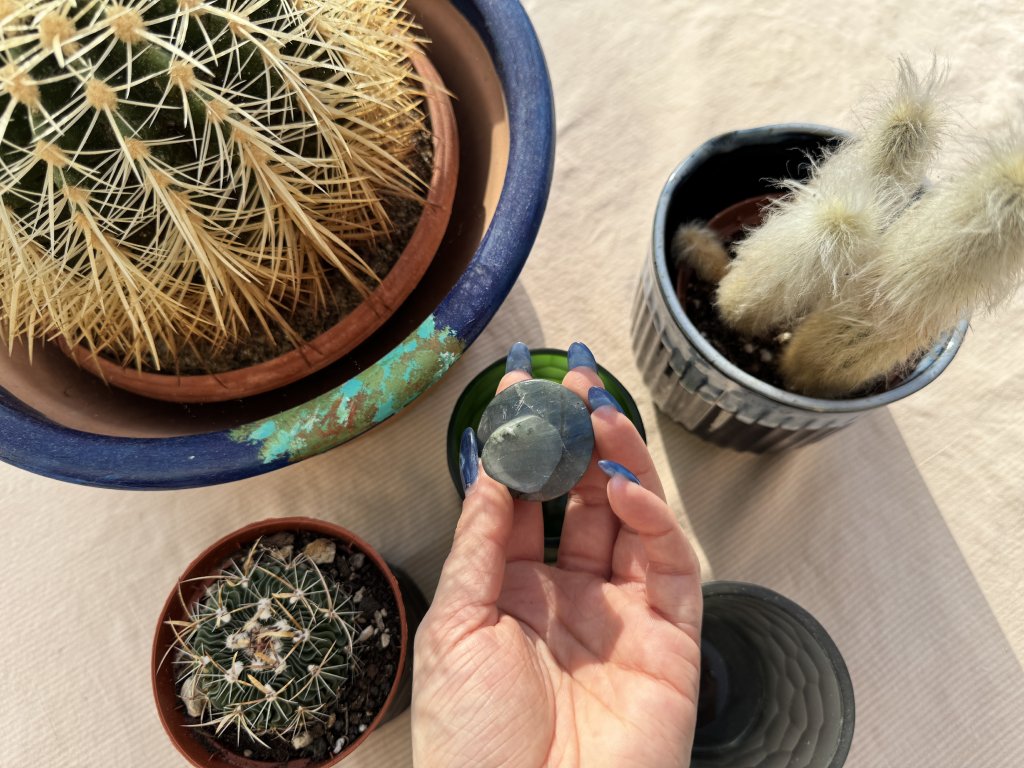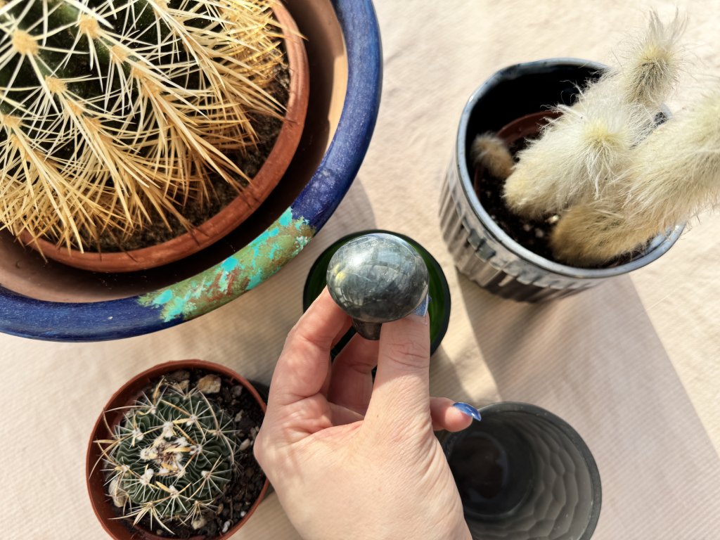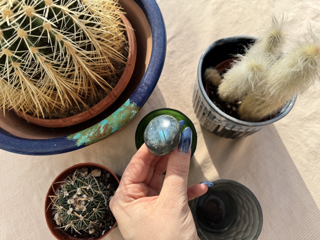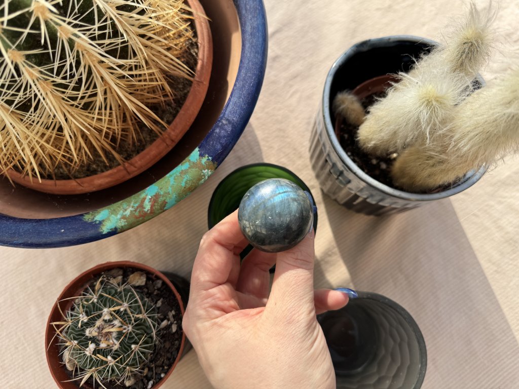 Labradoritová houba extra kvality. Barvo měna: světle modrá, žlutá, oranžová nádech fialové. Houba mění barvu s obou stran.