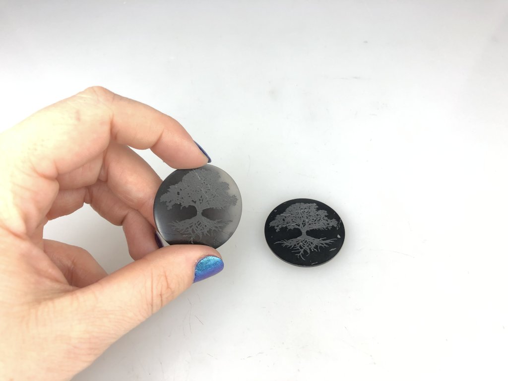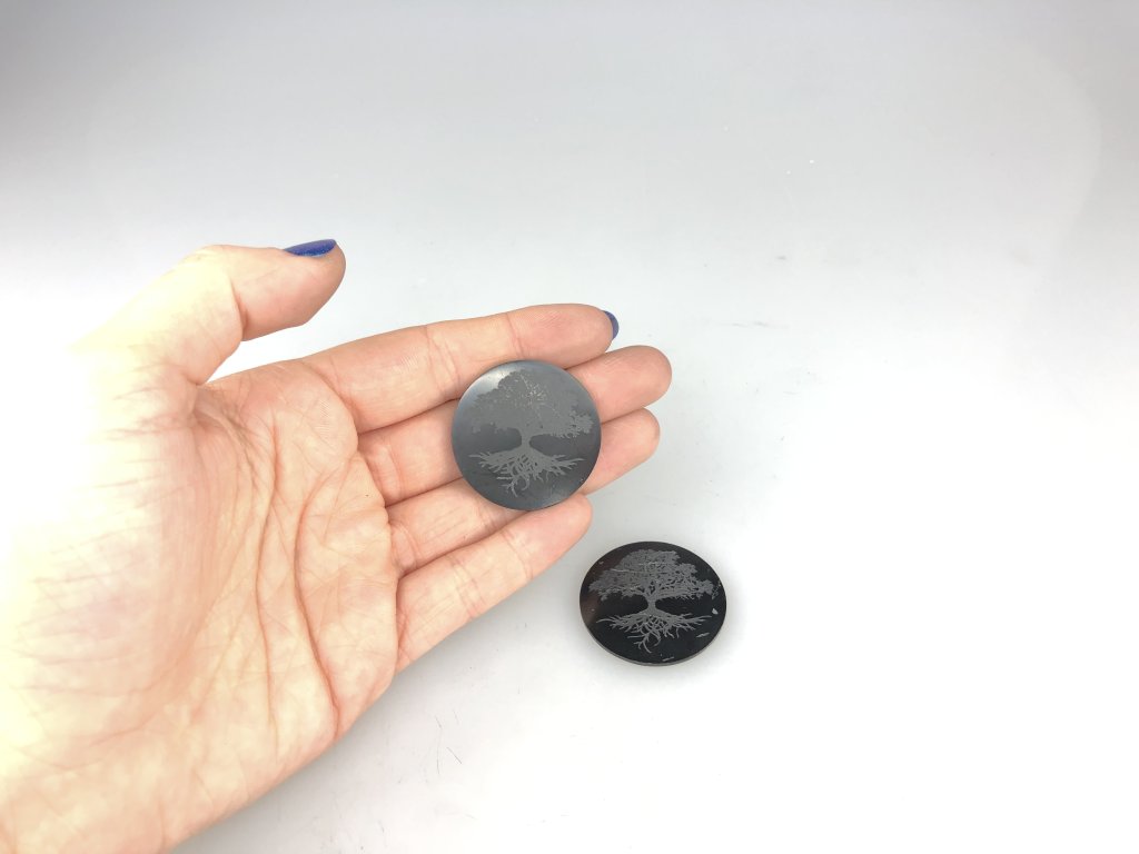 Ochranná destička k notebooku nebo většímu mobilu s vyřezaným stromem života, kulatá, leštěná. Můžete nalepit destičku na notebook (mobil), když předem odstraníte folii z lepicí strany destičky. Chrani proti elektromagnetickému záření přistroje. Velikost průměr 35 mm, tloušťka cca 3 mm. K destičce jsou připevněné informace.