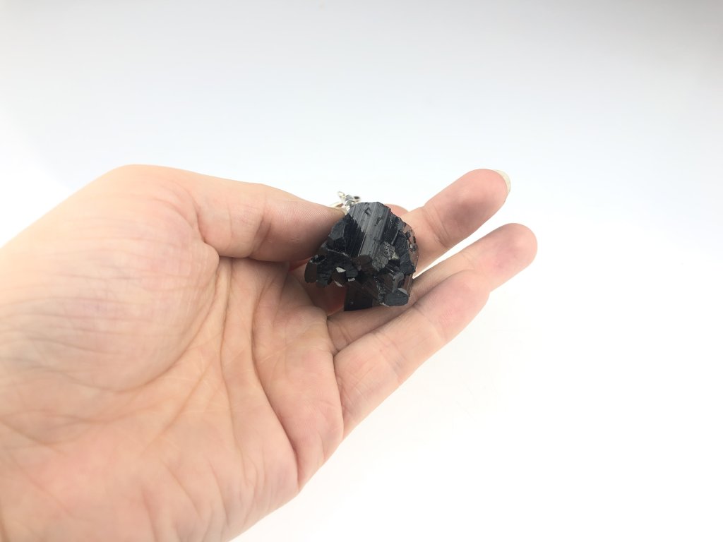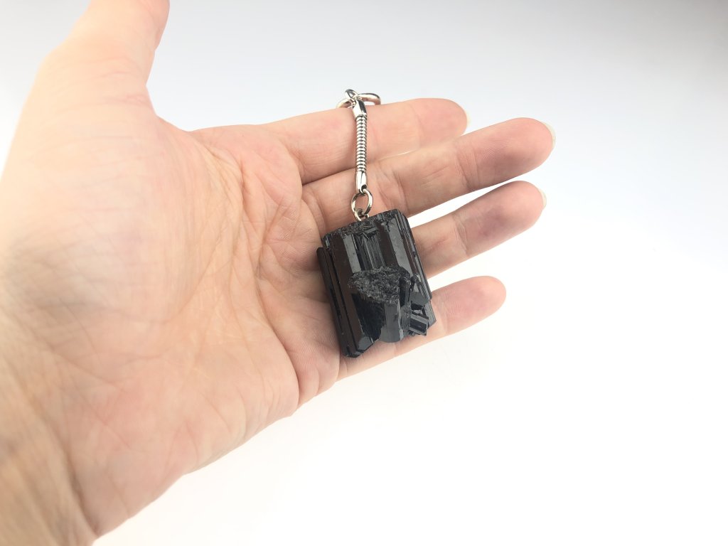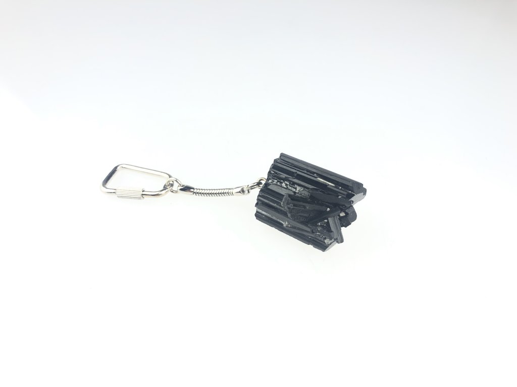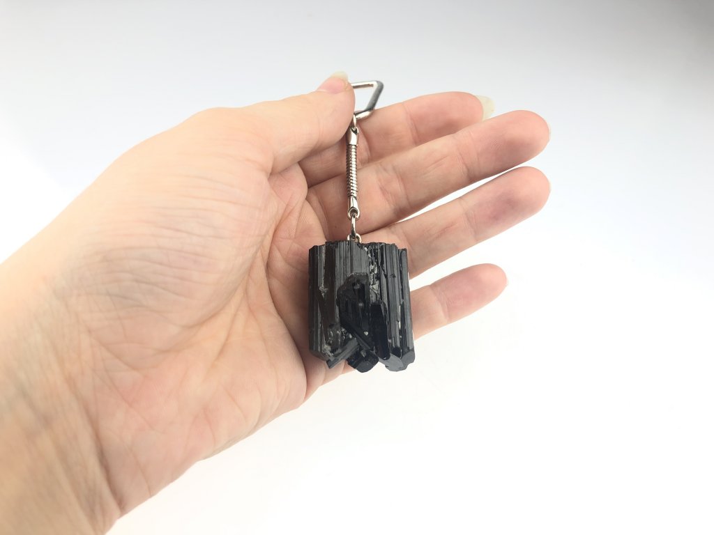 Originální přívěsek na klíče s přírodním krystalem černého turmalínu. U daného přívěsků se jedná o srůst několika krystalu turmalínu dohromady.
